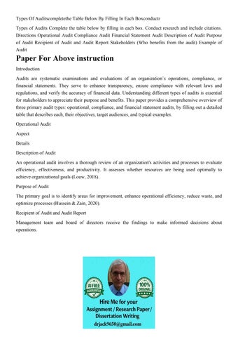 Types Of Auditscompletethe Table Below By Filling In Each Bo