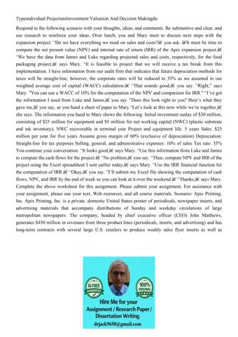 Typeindividual Projectunitinvestment Valuation And Decision
