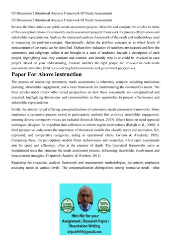 U2 Discussion 2 Situational Analysis Framework Of Needs Asse