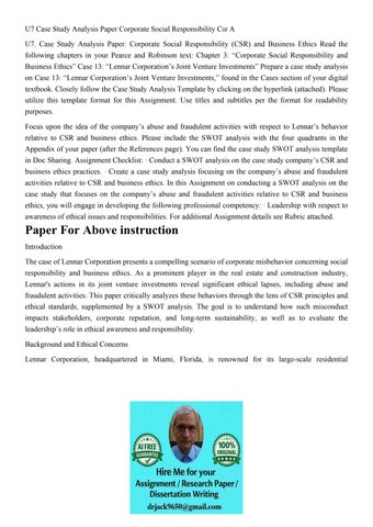 U7 Case Study Analysis Paper Corporate Social Responsibility