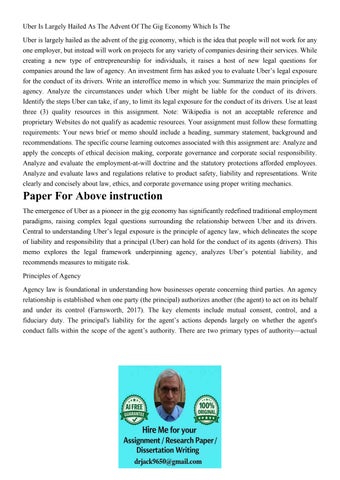 Uber Is Largely Hailed As The Advent Of The Gig Economy Whic