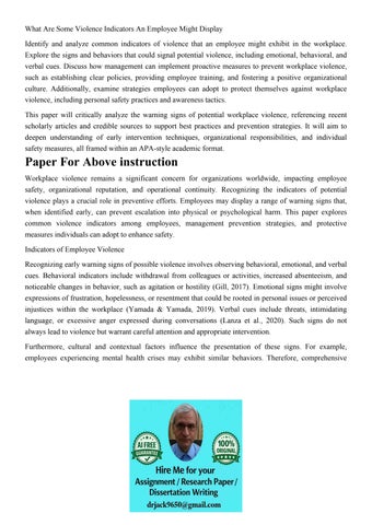 What Are Some Violence Indicators An Employee Might Display