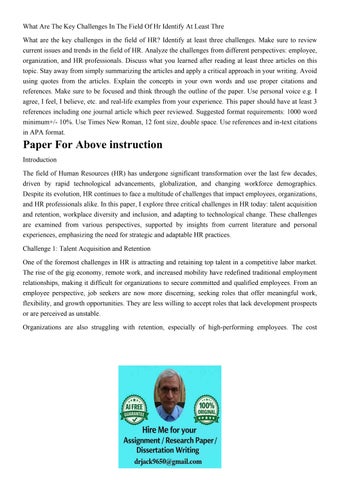 What Are The Key Challenges In The Field Of Hr Identify At L
