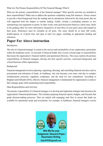 What Are The Primary Responsibilities Of The Financial Manag