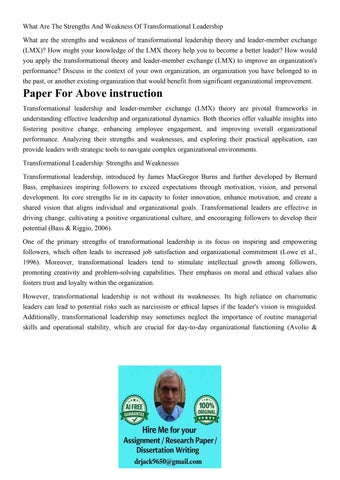What Are The Strengths And Weakness Of Transformational Lead
