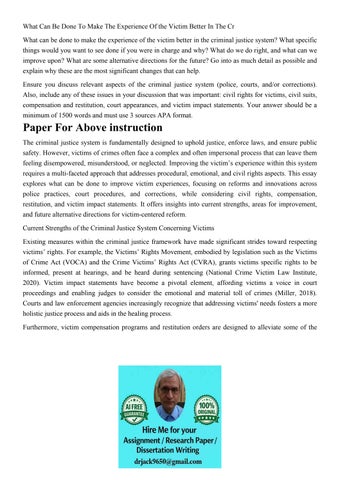 What Can Be Done To Make The Experience Of the Victim Better