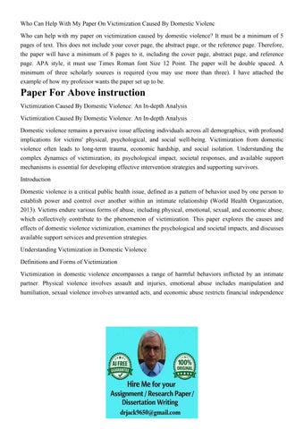 Who Can Help With My Paper On Victimization Caused By Domest