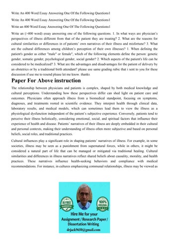 Write An 400 Word Essay Answering One Of the Following Quest