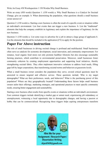 Write An Essay 450 Wordsquestion 1 150 Wordsa Why Small Busi