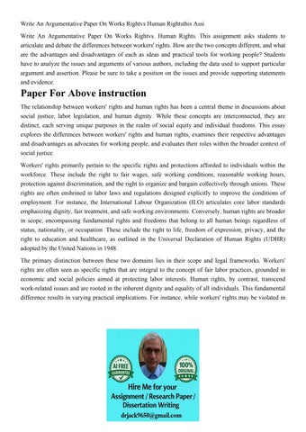 Write An Argumentative Paper On Works Rightvs Human Rightsth