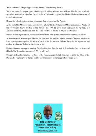 Write An Essay 2 5 Pages Typed Double Spaced Citing Primary