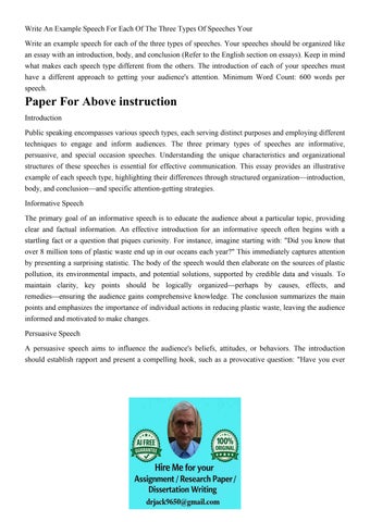 Write An Example Speech For Each Of The Three Types Of Speec