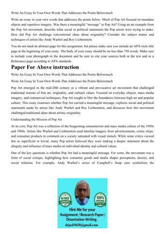 Write An Essay In Your Own Words That Addresses the Points B