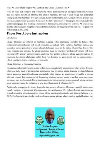 Write An Essay That Compares And Contrasts The Ethical Dilem