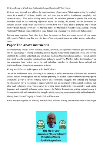 Write An Essay In Which You Address the Larger Questions Of