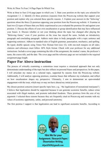 Write At Three To Four 3 4 Page Paper In Which You Write at