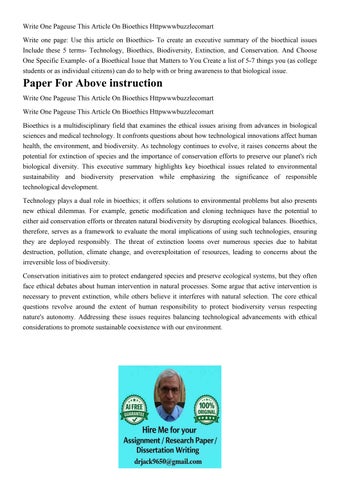 Write One Pageuse This Article On Bioethics Httpwwwbuzzlecom
