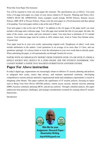 Write One Term Paper This Semester You will be required to w