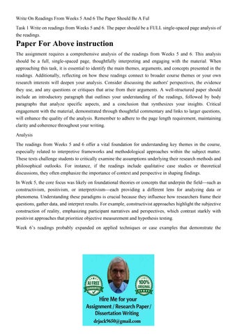 Write On Readings From Weeks 5 And 6 The Paper Should Be A F