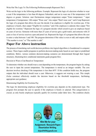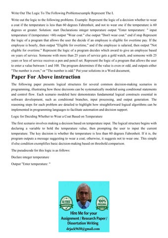 Write Out The Logic To The Following Problemsexample Represe