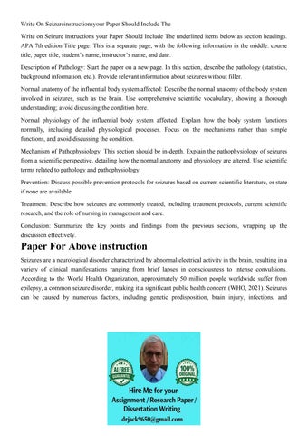 Write On Seizureinstructionsyour Paper Should Include The Wr