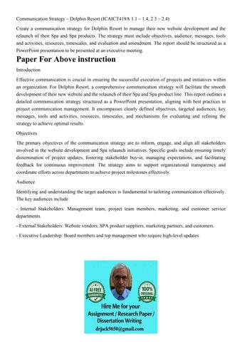 Communication Strategy – Dolphin Resort (ICAICT419A 1.1 – 1.