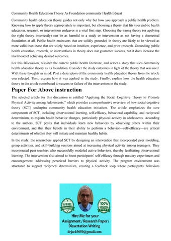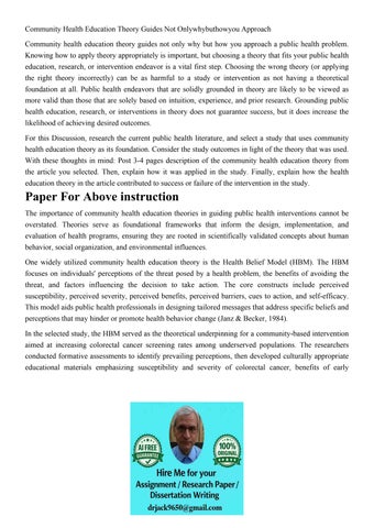 Community Health Education Theory Guides Not Onlywhybuthowyo