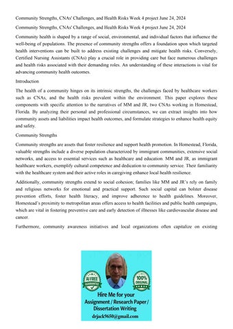Community Strengths, CNAs' Challenges, and Health Risks Week
