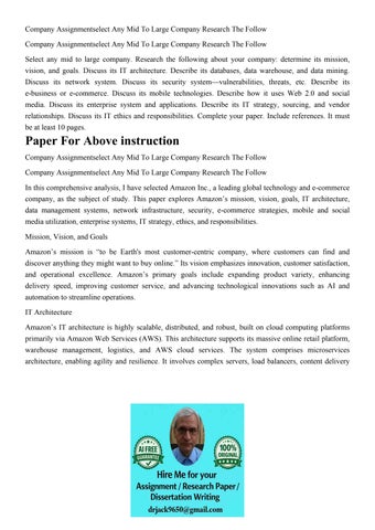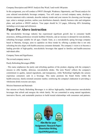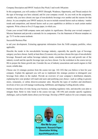 Company Description and SWOT Analysis Due Week 3 and worth 1