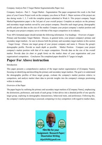 Company Analysis Part 3 Target Market Segmentationthe Paper