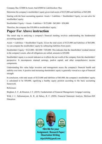 Company Has 123000 In Assets And 65000 In Liabilitieshow Muc