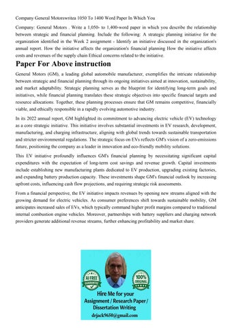 Company General Motorswritea 1050 To 1400 Word Paper In Whic