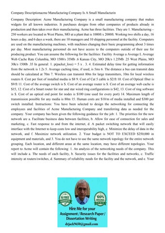 Company Descriptionacme Manufacturing Company Is A Small Man