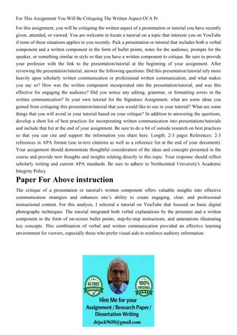 For This Assignment You Will Be Creating A Powerpoint Presen