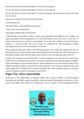 For This Discussion You Must Read Chapter 7 Of The Textsocio