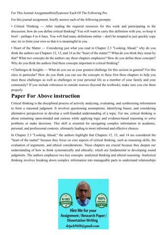 For This Journal Assignmentbrieflyanswer Each Of The Followi