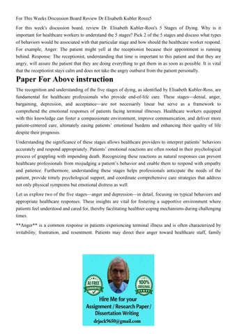 For This Weeks Discussion Board Review Dr Elisabeth Kubler R