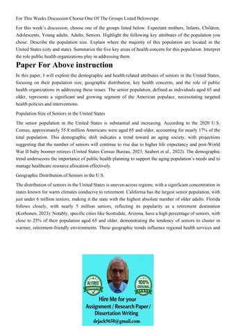 For This Weeks Discussion Choose One Of The Groups Listed Be