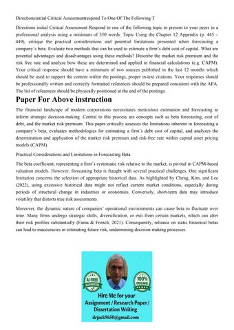 Directionsinitial Critical Assessmentrespond To One Of The F