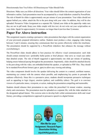 Directionsmake Sure You Follow All Directionsyour Video Shou