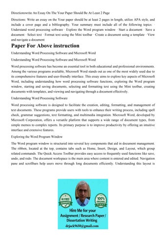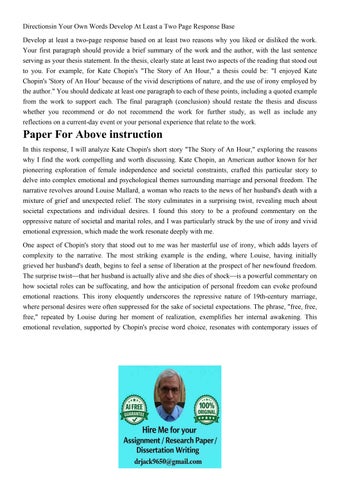 Directionsin Your Own Words Develop At Least a Two Page Resp