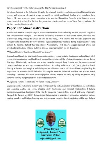 Directionsrespond To The Followingdescribe The Physical Cogn