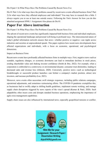 Dis 01part 1 In What Ways Have The Problems Caused By Recent