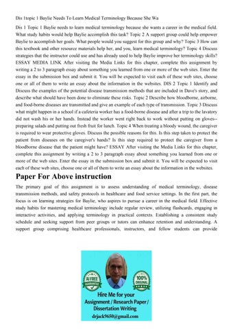 Dis 1topic 1 Baylie Needs To Learn Medical Terminology Becau