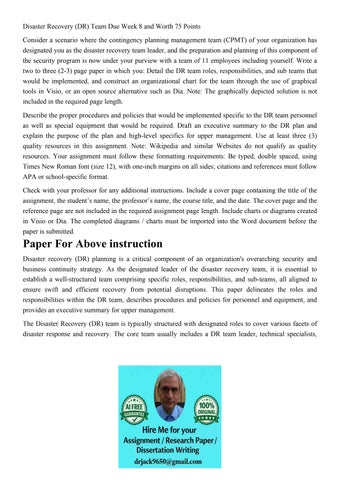Disaster Recovery (DR) Team Due Week 8 and Worth 75 Points C