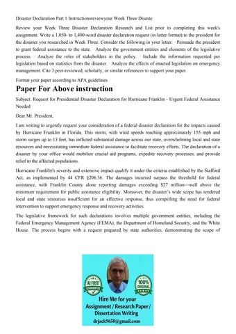 Disaster Declaration Part 1 Instructionsreviewyour Week Thre