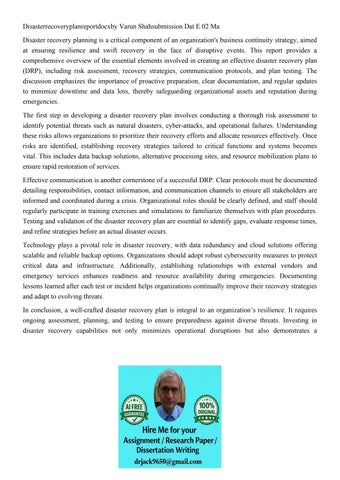 Disasterrecoveryplanreportdocxby Varun Shahsubmission Dat E