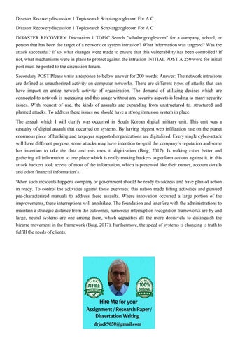 Disaster Recoverydiscussion 1 Topicsearch Scholargooglecom F
