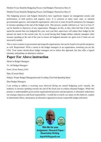 Module 8 Case Studythe Budgeting Process And Budgets Themsel