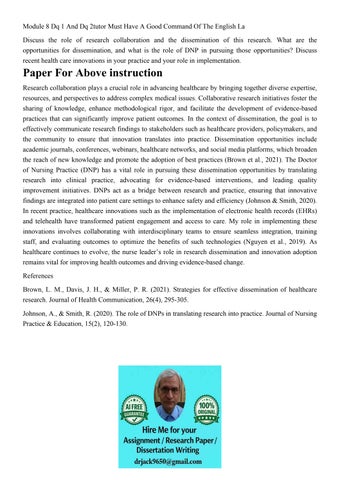 Module 8 Dq 1 And Dq 2tutor Must Have A Good Command Of The